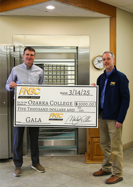 Photo Caption: (L-R) Ryan Howard, Ozarka College Board of Trustee and FNBC Regional Market President and Matt Rush, Ozarka College Foundation Board Member and FNBC Commercial Loan Officer.